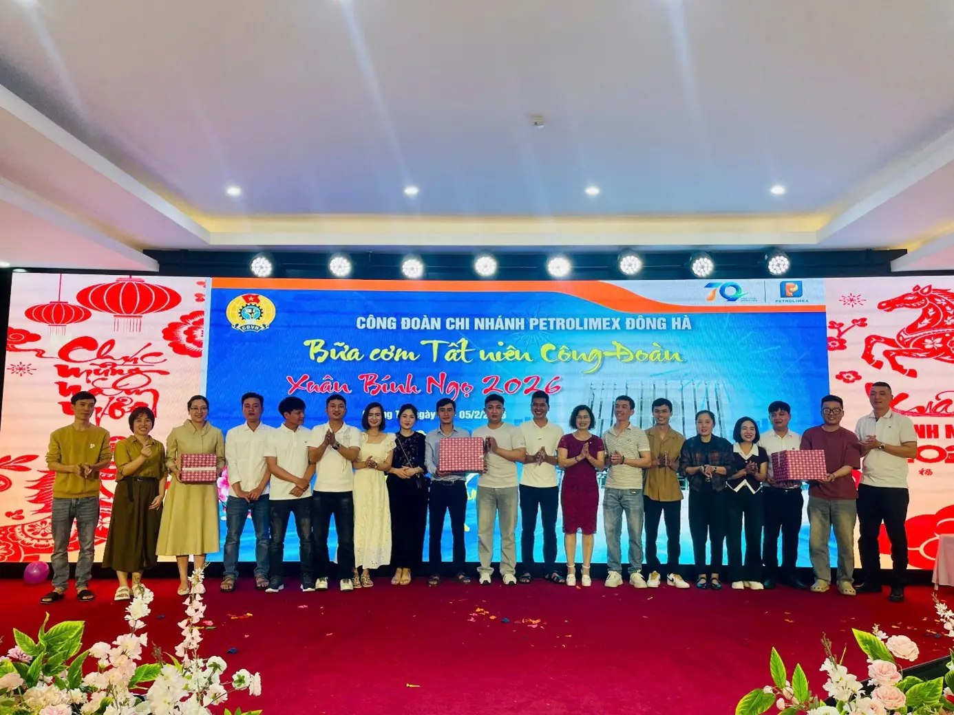 Trong không khí rộn ràng những ngày giáp Tết cổ truyền của dân tộc, trong hai ngày 04 và 05/02/2026, Công đoàn Cơ sở thành viên Chi nhánh Petrolimex Đông Hà (CĐCSTV) đã tổ chức chuỗi chương trình “Bữa cơm Tất niên Công đoàn” dành cho toàn thể đoàn viên, người lao động (ĐV-NLĐ), như một lời tri ân ấm áp, nghĩa tình trước thềm Xuân Bính Ngọ 2026.