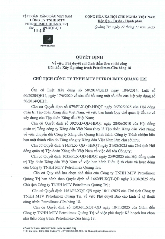 Nguồn: Petrolimex Quảng TrịCông ty TNHH MTV Petrolimex Quảng Trị