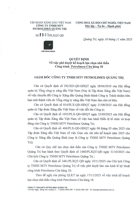 Nguồn: Petrolimex Quảng TrịCông ty TNHH MTV Petrolimex Quảng Trị