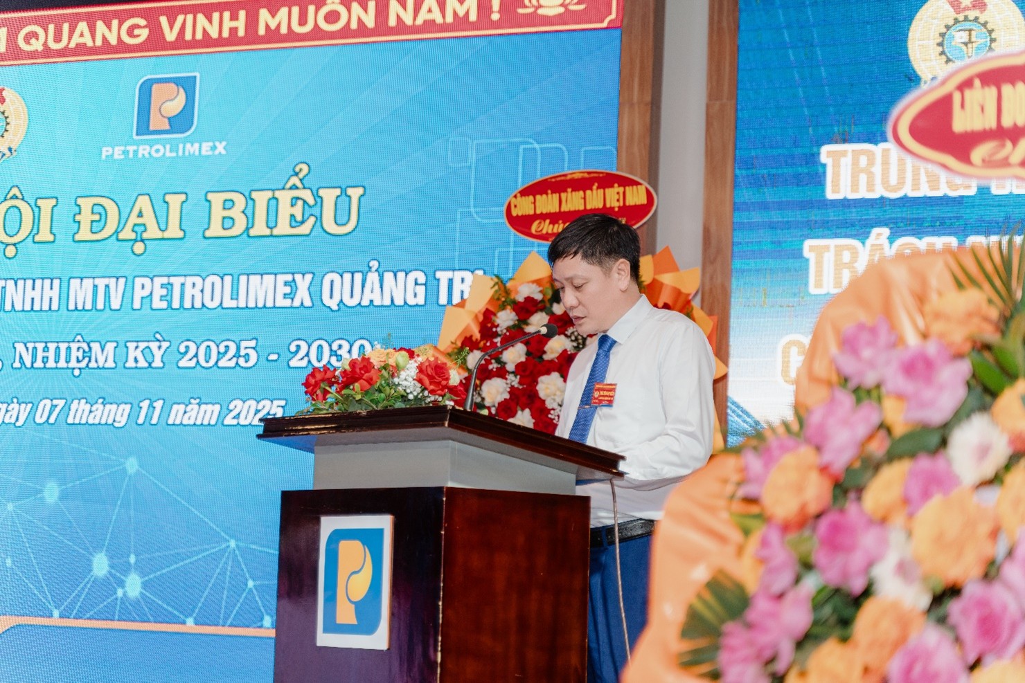 Trong không khí thi đua sôi nổi của toàn thể CBCNV-NLĐ phấn đấu hoàn thành kế hoạch sản xuất kinh doanh năm 2025, hướng tới Đại hội lần thứ VII Công đoàn Xăng dầu Việt Nam. Ngày 7/11/2025, tại phường Đồng Hới, tỉnh Quảng Trị, Công đoàn Công ty TNHH MTV Petrolimex Quảng Trị long trọng tổ chức Đại hội lần thứ XIII, nhiệm kỳ 2025–2030. Đây là một sự kiện chính trị mang ý nghĩa đặc biệt quan trọng, là Đại hội đầu tiên sau khi sáp nhập Công ty Xăng dầu Quảng Bình và Công ty Xăng dầu Quảng Trị, đánh dấu bước ngoặt quan trọng trong quá trình phát triển của tổ chức công đoàn, mở ra chặng đường mới với quy mô lớn hơn và sức mạnh đoàn kết mạnh mẽ hơn.