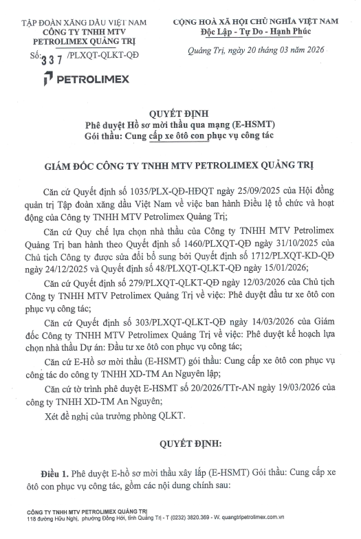 Nguồn: Petrolimex Quảng TrịPetrolimex Quảng Trị