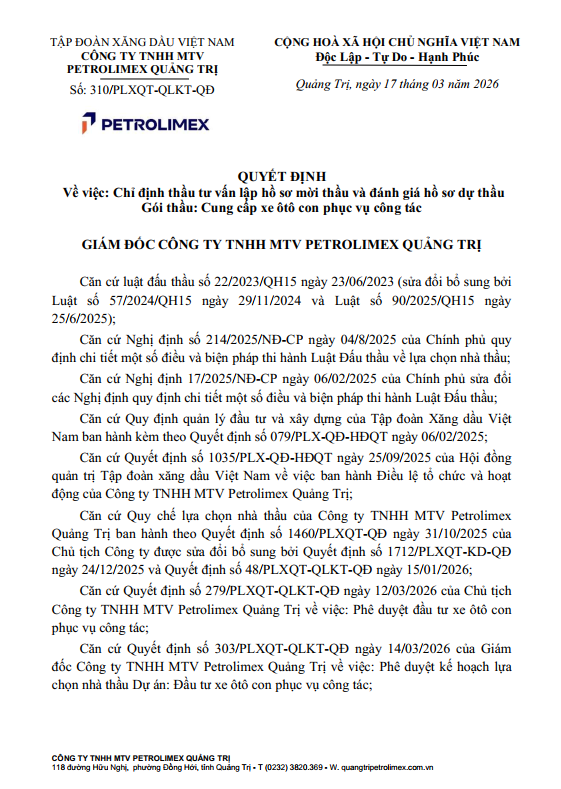 Nguồn: Petrolimex Quảng TrịPetrolimex Quảng Trị