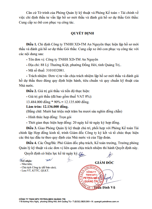 CÔNG TY TNHH MTV PETROLIMEX QUẢNG TRỊ PETROLIMEX QUANG TRI