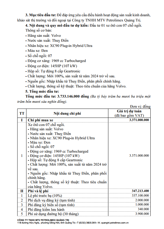 Quyết định phê duyệt xe ô tô con phục vụ công tác