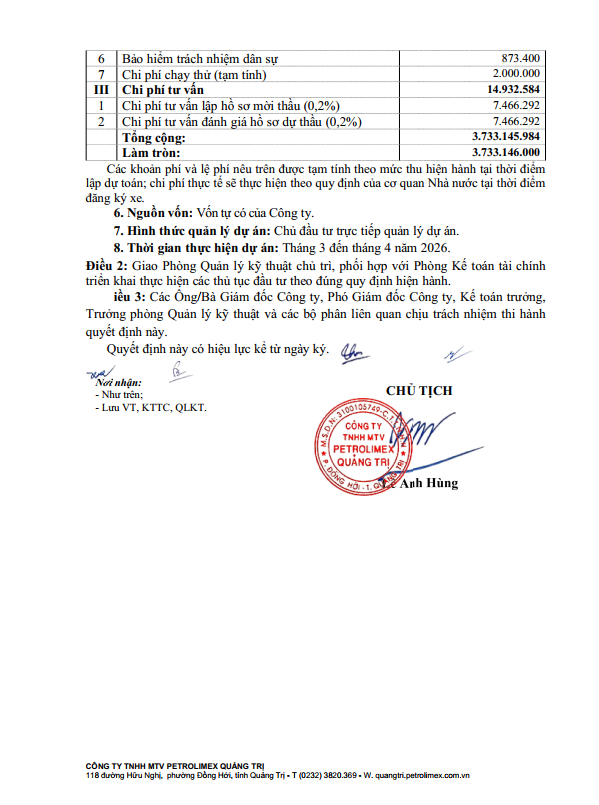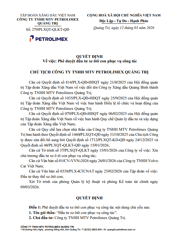 CÔNG TY TNHH MTV PETROLIMEX QUẢNG TRỊ