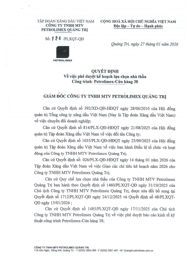 Nguồn: Petrolimex Quảng TrịPetrolimex Quảng Trị