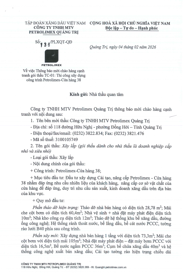 Nguồn: Petrolimex Quảng TrịPetrolimex Quảng Trị